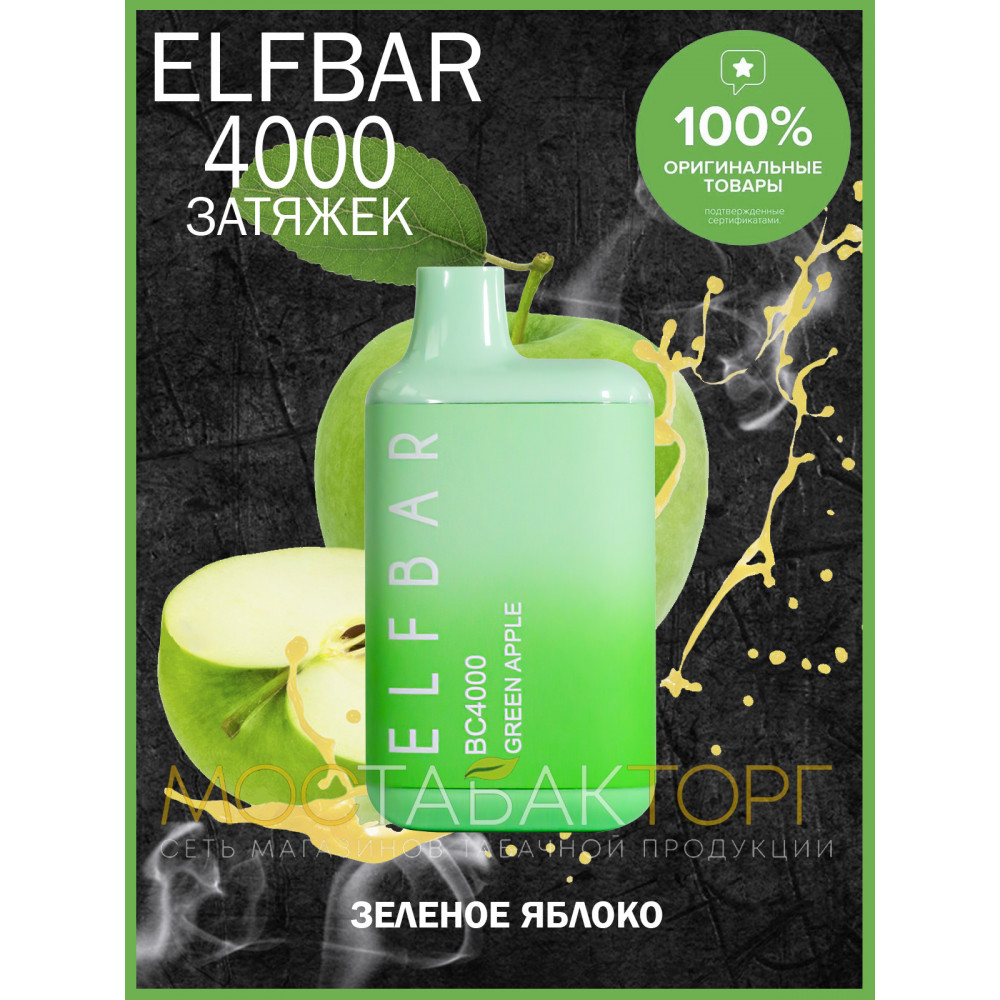 Elf Bar видыBC 4000 Elf Bar вкусыЗелёное Яблоко Elf Bar количество в блоке10 шт