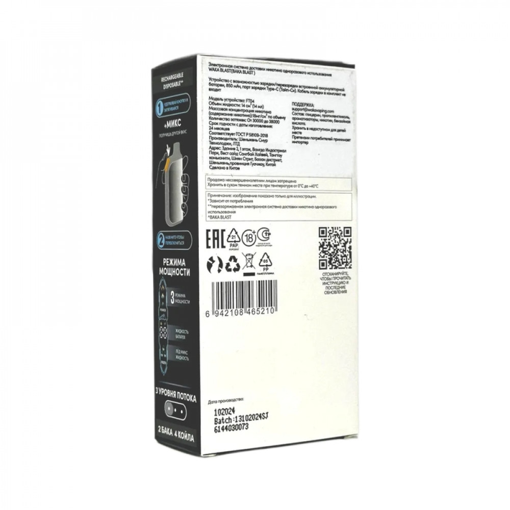 На складе Код товара: WAKA BLAST 38000 Hard - Ментол + лед микс